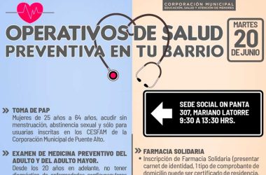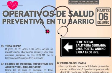 Corporación de Salud de Puente Alto realizará este martes 6 de junio «Operativo de Salud en tu Barrio».